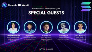 On August 14, 2025, Comets of Web3 launched the 4th cohort of the Romanian Solana Developer Program, a six-week initiative dedicated to empowering the next generation of blockchain developers.