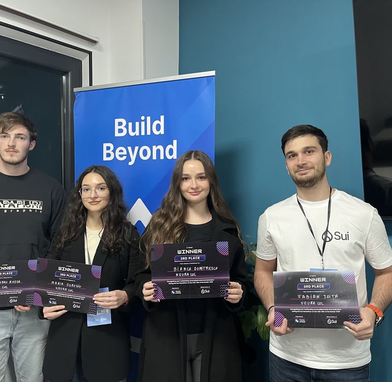 Bucharest transformed into a hive of creative energy for the Sui Hackathon! In a carefully organized mix of work and mentorship, teams worked straight through from Friday evening to Sunday afternoon in a non-stop frenzy. The structure was simple: build, pause, refine, demo - with expert support always on hand. One of our colleagues even mentioned on our LinkedIn page: “Day 2 … went by fast, focused, and full of progress, thanks to our mentors!”